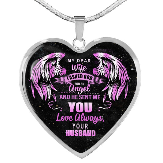 Gifts My Dear Wife I Asked God for an Angel and He Sent Me You from Your Husband Heart Pendant Necklace heart luxury necklace silver
