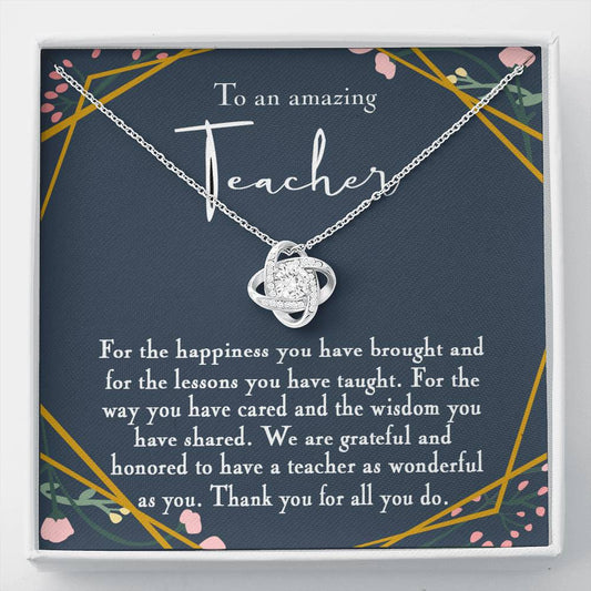 Gifts Necklace Love Knot, Teacher Thank You Necklace Gift, Autism Necklace, Autism Awareness Necklace, Autism Teacher Gift, Behaviorist Gift Teacher include Mahogany style Luxury box Wedding Day, Gift