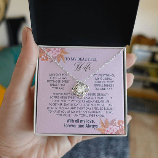 Gifts To My Beautiful Wife Necklace Sentimental Gift For Wife Valentines Day Gift To My Wife Necklace With Heartfelt my Everything Message Card, Wife Gift From Husband Soulmate Necklace For Her Knot Necklace for Granddaughter Vippppp