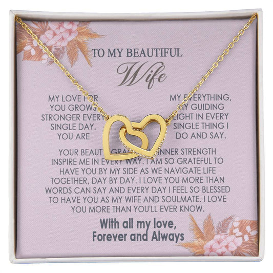 Gifts To My Beautiful Wife Necklace Sentimental Gift For Wife Valentines Day Gift To My Wife Necklace With Heartfelt my Everything Message Card, Wife Gift From Husband Soulmate Necklace For Her Interlocking Vip for GrandDaughter