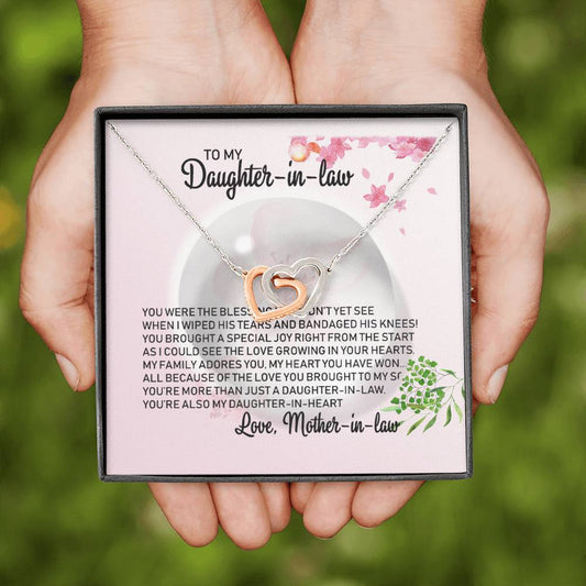 Gifts to My Daughter in Law Joined Hearts Necklace, Gift for Daughter in Law, Welcoming Daughter in Law Into Family, Daughter in Law Jewelry Birthday ASIN: B08HSJVM6B