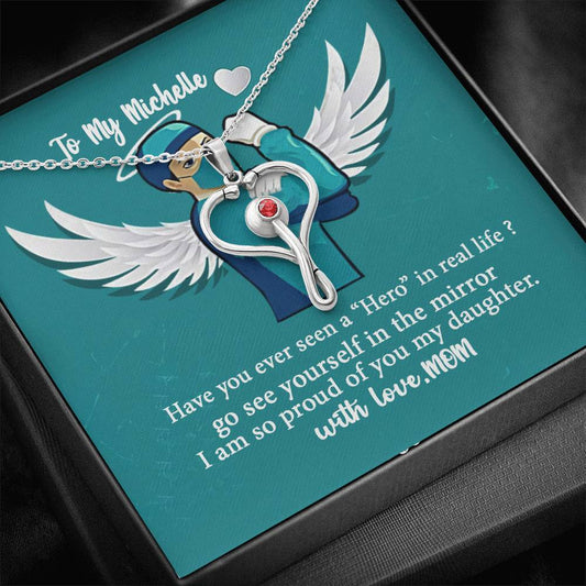 Gifts to My Daughter Necklace Custom Name Nurse Personalized to My Daughter Nurse Stethoscope Necklace to My Angel Nurse from Mom - Daughter Hero in Real Life with Red Swarovski® Crystal