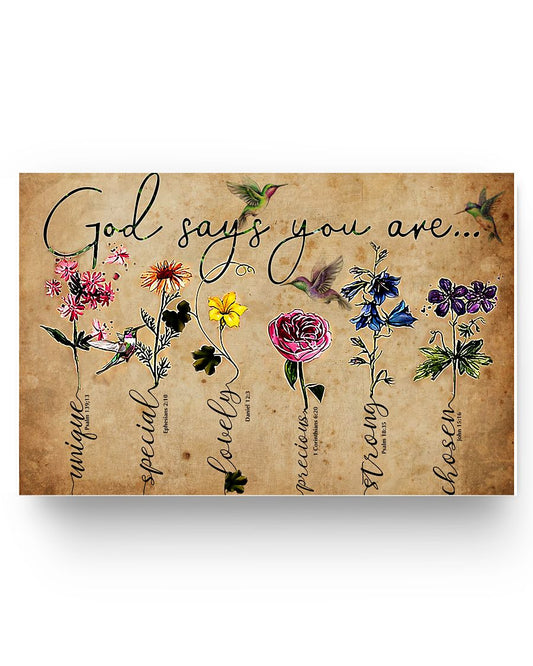 God God Says You are Unique Special Lovely Precious Strong Chosen Hummingbirds and Flower Posters Best Gift Unisex, Awesome Birthday Decor Bedroom, Living Room Print