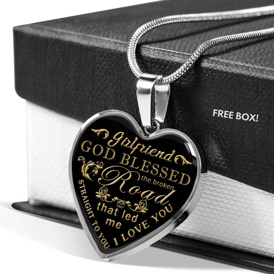 Girlfriend Heart Necklace - Boyfriend Girlfriend Heart Pendant - Sweet Quote for Her - Woman's Jewelry - Birthday gift for Love on Valentine, Xmas Day