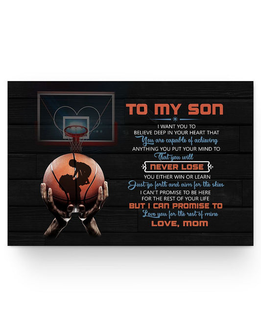 Inspirational Paper Poster to My Son I Want You Believe Deep in Your Heart Basketball from Mom Gift Family Unisex Awesome On Birthday, Decor Home Dura