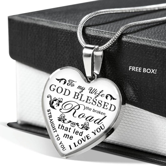 Lovely Husband Wife heart Pendant - Meaningfull Birthday Gift for wife - God Blessed The Broken Road - Romantic Valentine Gift For love Wife , Woman