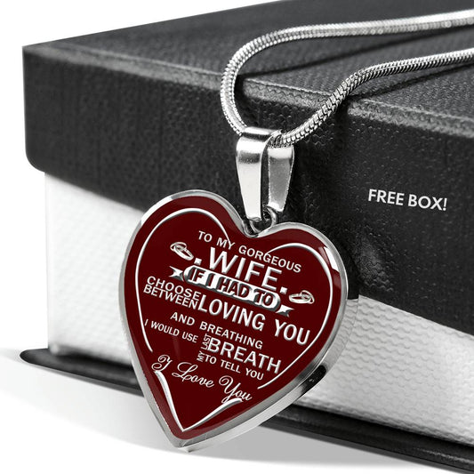 Lovely To My Love - Use My Last Breath To Tell You I Love You - Husband Wife Heart Pendant Necklace Chain - Wedding Gifts Woman