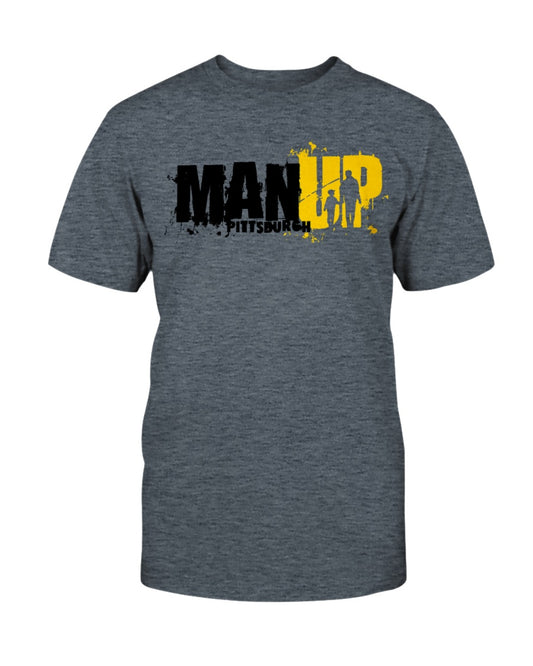 Men's ManUp Pittsburgh Mike Tomlin Football Short Sleeve White T-shirt S-5XL G500 Gildan 5.3 oz. Super T-Shirt Full size. Full color, S M L XL 2XL 3XL 4XL 5XL 6XL, Black, Navy, Dart Chocolate, Heather, Forest, Red, Military Green