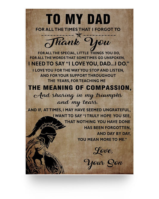 Spread Inspiration Spartan Warrior Poster to My dad Love Your Son Thank You Art Print Size 12x18 16x24 24x36