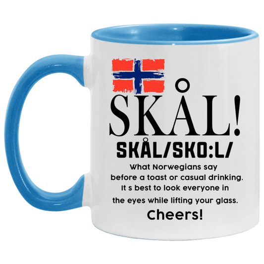 Tea cup Skal What Norwegians Say Before a Toast or Casual Drinking – Norwegian Gifts Accent Mug 2 Side, 11 oz White - Black Accent Mug On Birthday Gift Heat resistant coffee cups Capacity and Perfect TEACUP_1 AM11OZ 11 oz. Accent Mug