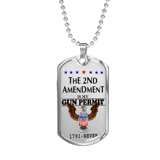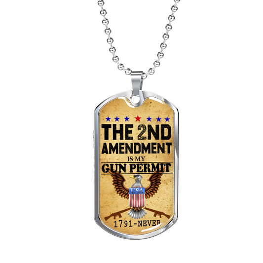 The 2nd Amendment Is My Gun Permit 1791 - Military Dog Tag - Veteran Necklace