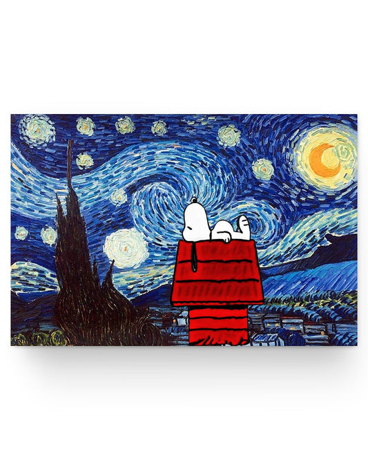 Painting Canvas Snoopy Starry Night Canvas with Frame Size 12x18 Gift for Women, Awesome Christmas, Birthday Gift Decor Livingroom Print CANLA15 Deluxe Landscape Canvas 1.5in Frame