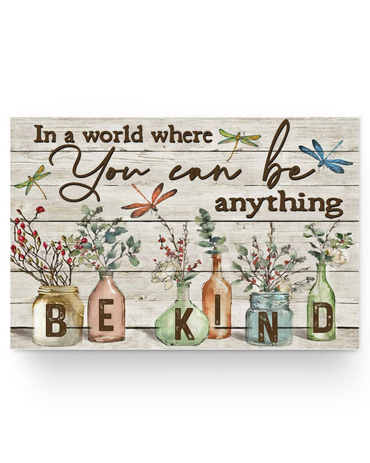Wall Murals Lifestyle Beautiful Flower and Dragonfly in A World Where You Can Be Anything Be Kind Family Friend Gift Unisex, Awesome Birthday Gift Decor Bedroom, Living Room Print