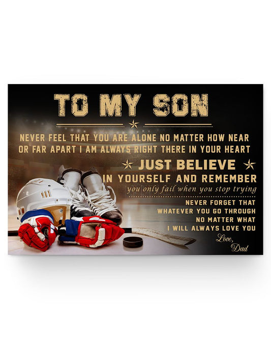 Lhd Hockey Poster - to My Son - Just Believe Family Friend Gift Unisex, Awesome Birthday Perfect Happy Birthday Gift Decor Bedroom, Living Room Print