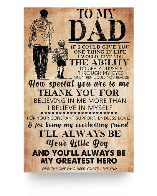 Inspirational Son to My Dad - Vintage Poster If I Could Give You One Thing in Life, You'll Always Be My Greatest Hero Posters Print Great My Dad, On Father's Day, Birthday, Home Decor