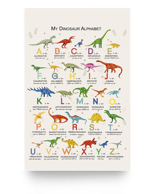 Paper Poster Jobs Teachers My Dinosaur Alphabet A B C D Family Friend Awesome Gifts Birthday Decor Home, Wall Art Durable Print 11x17
