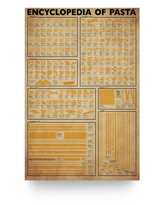 Meaningful Gifts Paper Poster Encyclopedia of Pasta The Awesome Chef Specialty Ribbon Cut Pasta Best Gift Unisex, Awesome Birthday Perfect Happy Birthday Gift Decor Bedroom, Living Room Print 24x36