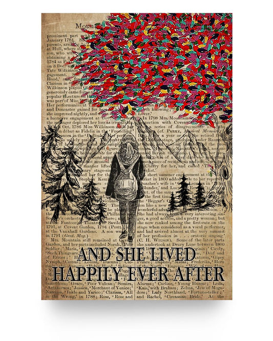 Motivational Gift Hiking and She Lived Happily Ever After Ver 2 Poster No Frame Size 16x24 inch Gift for Women, Awesome Christmas, Birthday Gift Decor