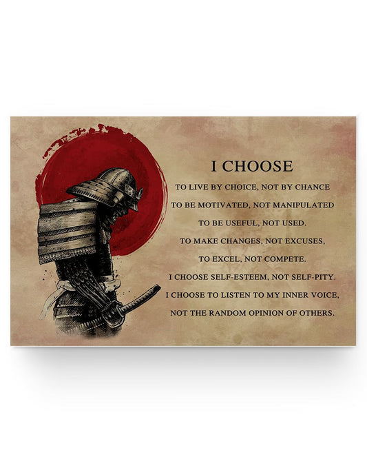 Motivational Gift Samurai I Choose to Live by Choice Not by Chance Poster No Frame Size 16x24 inch Gift for Women, Awesome Christmas, Birthday Gift Decor Home Print