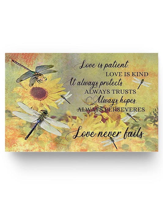 Inspiration gift Dragonfly Poster Love Is Palient Love Is Kind It Always Proleets Always Trusts Always Hopes Always Perseveres Love Never Fails Awesome Birthday Perfect Happy Birthday Gift Decor Bedro ASIN: B08FMHHJVL