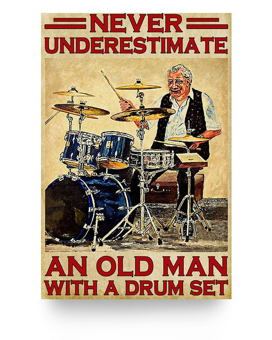 Art Wall Paintings Never Underestimate an Old Man with A Drum Set Poster, Music Poster, Drums Wall Decor, Music Studio Decor, Drummer Gift, Home Decor Great Gifts Birthday, X-mas Gifts Size 16x24 inc