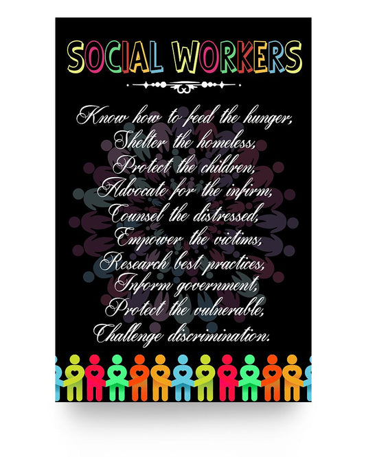 Birthday Gifts Social Workers Poster Know How to Feed The Hunger Shelter The Homeless Protect The Children Advocate for Challenge Discrimination Perfect On, Decor Home, Wall Art