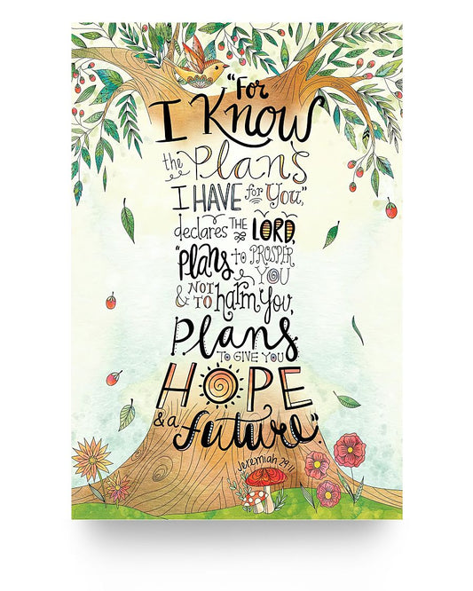Birthday Gifts Tree Bird Dragonfly Poster for I Know The Plans I Have for You Declares The Lord Plans to Prosper You Plans to Give You Hope &A Future Perfect On, Decor Home, Wall Art
