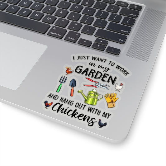 1 Pcs Sticker Decor I just Want to Work in My Garden and Hang Out with My Chickens Sticker, Garden Sticker, Chicken Sticker, Farm Sticker Size Custom Sticker for Laptop Decal Wall Laptop Full SizeStickers