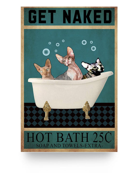 Art Wall Paintings Get Naked, Hot Bath Poster, Sphynx Cat Poster, Funny Cat Poster, Sphynx Cat Lover Gift, Sphynx Cat Portrait, Bathroom Decor, Hot Tub Great Gifts Birthday, X-mas Gifts Size 16x24 i