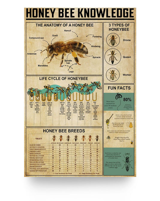 Meaningful Gifts Inspiration Gift Honey Bee Knowledge The Anatomy Life Cycle Breed Type & Fun Facts Poster No Frame Size 16x24 inch Gift for Men, Awesome Birthday, Decor Bedroom Print