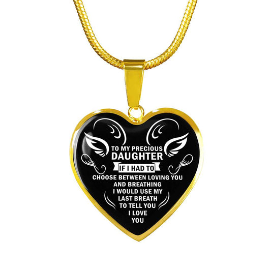 To My Precious Daughter Heart Pendant Necklace - I Love You - Meaningful Quote - Unique Birthday Gift Ideas For Your Kids On Xmas, Anniversary