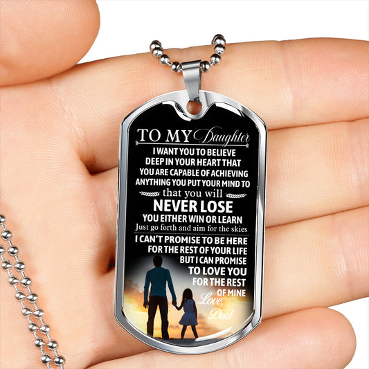 to My Daughter Dog Tag Custom Love Dad - Never Lose Necklace Pendant Chains - Father Daughter Gifts for Christmas Birthday Gag Gift Jewelry Silver/Gold