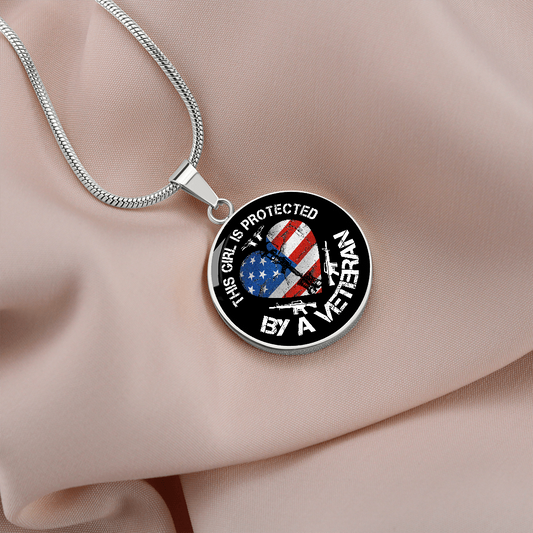 Perfect Gifts Daughter Necklace, This Girl Is Protected By A Veteran, Daughter Gifts From Dad 14k White Gold on Christmas, Brithday, Vacation Gifts B099BNMBHY