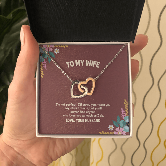 Necklace To My Wife I’m Not Perfect I’ll Annoy You From Husband Interlocking Hearts Pendant Necklace Wedding Day, Gift For Daughter Gifts Christmas, on Birthday Luxury necklace