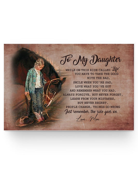 Poster to My Daughter from Mom While on This Ride Called Life Horse – Family Friend Awesome Gifts Birthday Decor Home Wall Art Durable Print 16x24