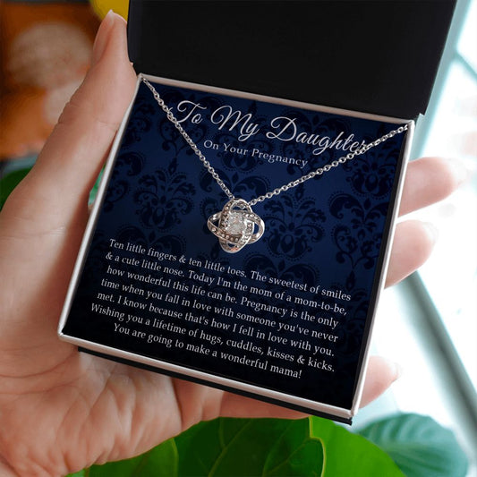 Gifts Necklace Love Knot Necklace, Daughter Pregnancy, Gift for Daughter for Mom to Be, Gift for Expecting Mom, Gift Pregnant Daughter, Include Mahogany Style Luxury Box Wedding Day, ASIN: B08XHMF4S9