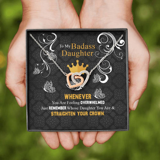 Necklace Gifts from Dad to My Badass Daughter Whenever Feeling Overwhelmed Straighten Ur Crown Interlocking Hearts Necklace Gifts Birthday, on Christmas Silver Luxury Necklace