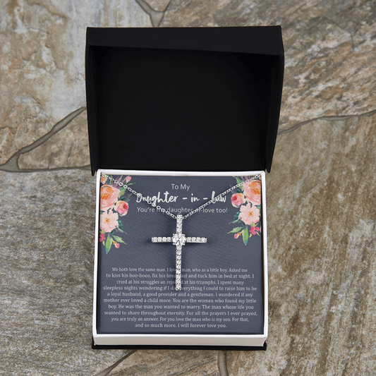 Daughter-In-Law Cross Necklace, Gift For Daughter In Law, Welcoming Daughter In Law Into Family, Daughter In Law Jewelry .925 Sterling Silver with Cubic Ziconia CZ Cross Necklace