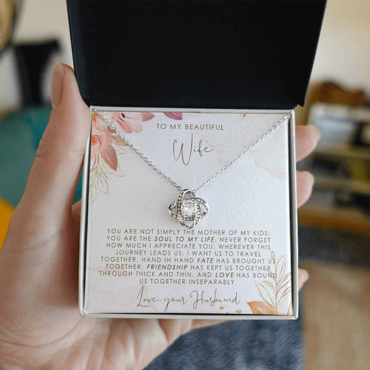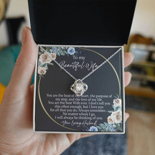 To My Beautiful Wife Necklace With Message Card, Anniversary Birthday Gift for Wife, Wife Gift From Husband, Sentimental Gift for Wife, Birthday Gift for Wife on Valentine Gifts To Wife from Husband vs2 Knot Necklace for Granddaughter Vippppp
