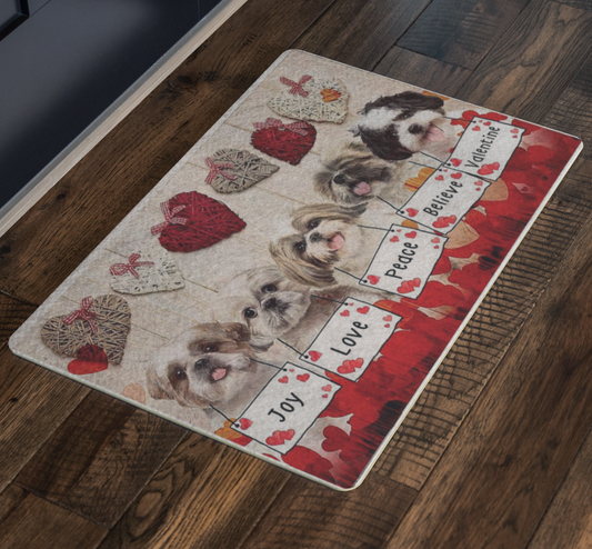 Doormat Home Decor Shih Tzu Joy Love Peace Gift for You Personalized Gift Funny Doormat Valentine Gift for Her Him Gifts for Mom, Girlfriend, Dad, Wife Home On Christmas, Holiday, Birthday.