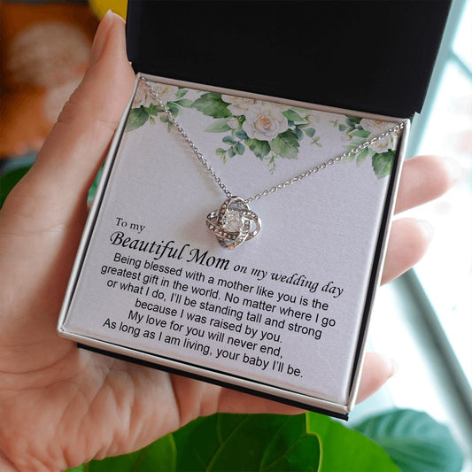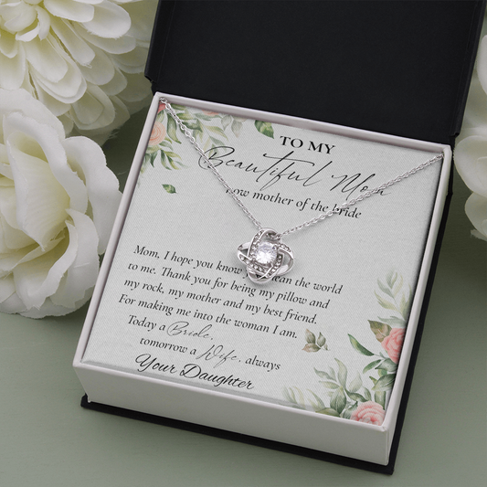 To My Beautiful Mom Now Mother Of The Bride Love Knot Necklace – Mom Wedding Gifts From Daughter
