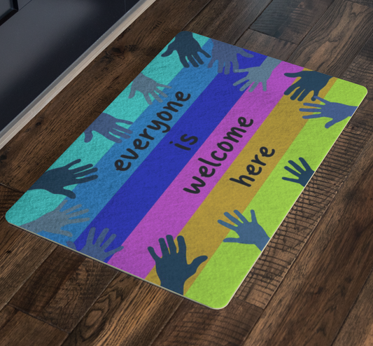 Doormat modern Everyone Is Welcome Here Doormat, LGBT Doormat, Diversity Hands, Inclusion & Kindness Welcome Doormat, Kindness Doormat, Front Door Mat Gift size 26x18 Gifts for Mom, Girlfriend, Dad, W
