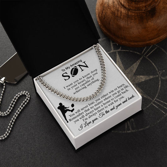 ASIN: B0BK4L69WP SKU: NecklaceforSON-Mom_4Standard+Silver Football Gift For Son, Cuban Link Chain Gift