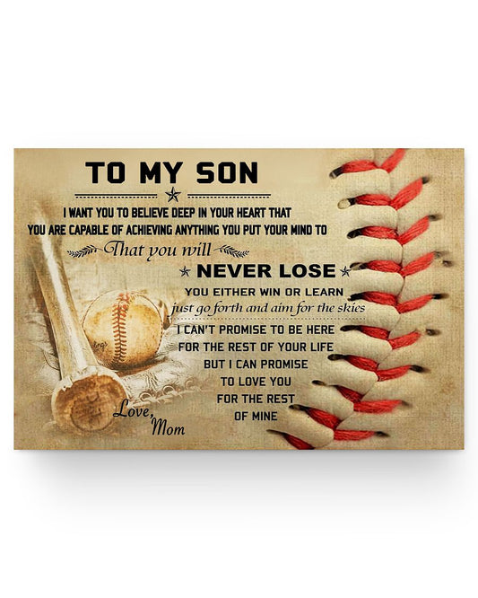 Baseball Poster To My Son I Want You To Believe That You Will Never Lose You Either Win Or Learn For The Rest Of Mine Love Mom for Family Poster Happy Birthday Gift on Christmas size 11x17, 16x24, 24x ASIN: B08GJWWKRC