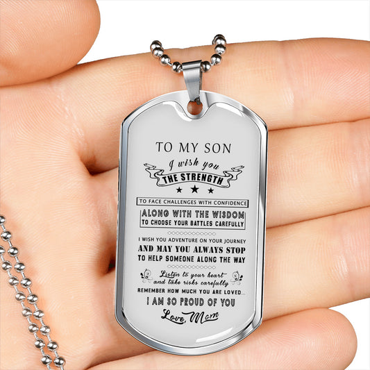 To My Son Pendant Necklace from Mother- I Love You Son Dog Tag Chain 30 inch, I am so proud of you - Birthday Gifts for Kids