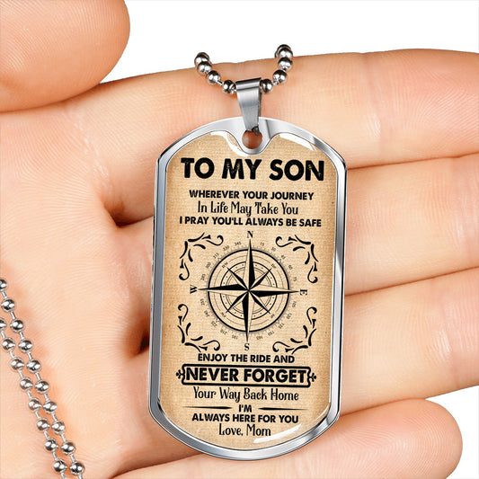 Gifts To My Son Wherever Your Journey in Life May Take You Dog Tag Pendant Necklace dog tag silver ASIN: B08HSF57SC