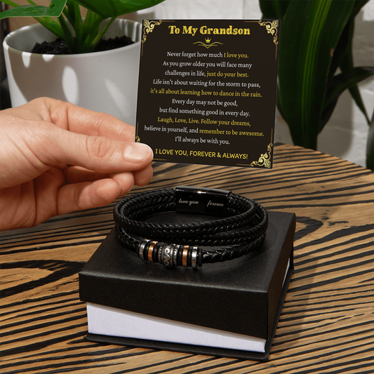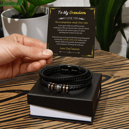 To My Grandson Bracelet – Graduation Gift for Grandson, Meaningful Bracelet from Grandparent with Heartfelt Message Card & Gift Box, Birthday Gift Bracelet for Grandson, Inspirational Jewelry for Boys & Teens