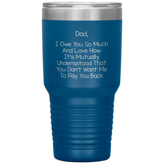 Dad 30oz Tumbler, Dad I Owe You So Much And Love How It's Mutually Understood, Black Insulated Cup Gifts For Father From Daughter Son