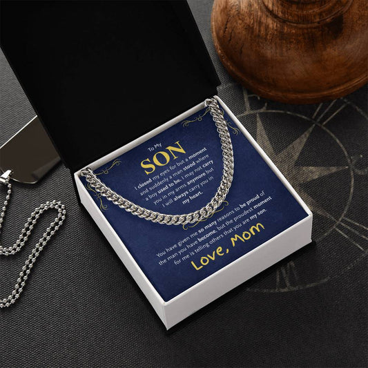 To My Son From Mom, Son Gifts From Mom and Dad, Mother and Son Necklace, Birthday Gift For My Son Graduation Christmas Cuban Link Chain Necklace Present
