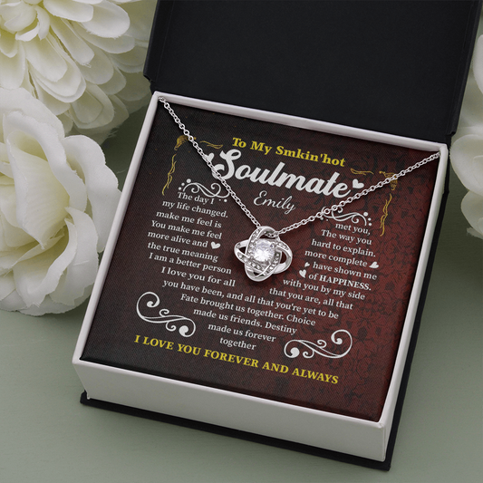 Emily Personalized to My Smokin’ Hot Soulmate the Day I Met You My Life Changed Love Knot Pendant Necklace